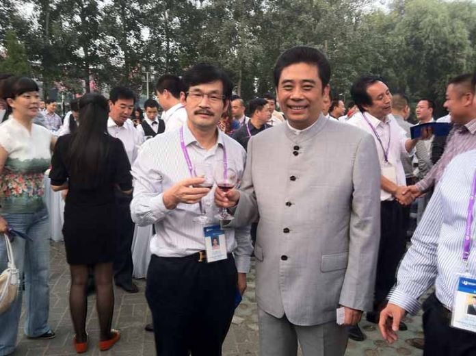 公司董事长与世界杰出华商协会主席卢俊卿在宴会上合影