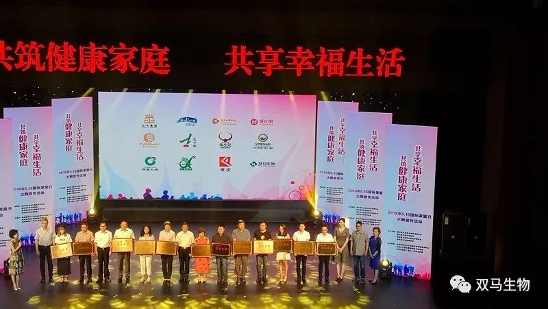 “共筑健康家庭,共享幸福生活”,5月15日下午,在“2018年5•15国际家庭日”活动中,双马生物与12家爱心企业荣获“计生家庭帮扶爱心企业“荣誉称号。浙江省卫生计生委党组书记、主任张平,省卫生计生委副主任王国敬,省文化厅副厅长叶菁等出席了活动。活动围绕“文明、健康、优生、致富、奉献”主题,大力开展“文明倡导、健康促进、致富发展”三大活动,深入推进健康家庭行动和幸福家庭创建活动,促进家庭和谐幸福。
