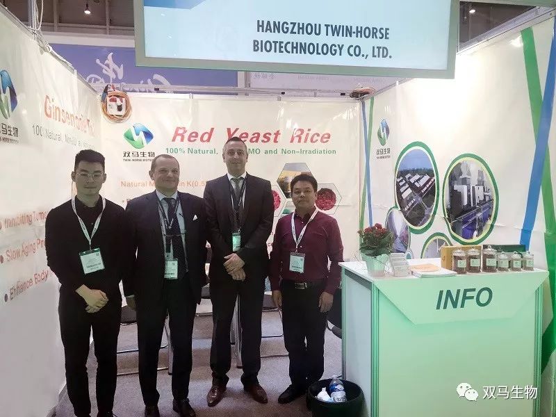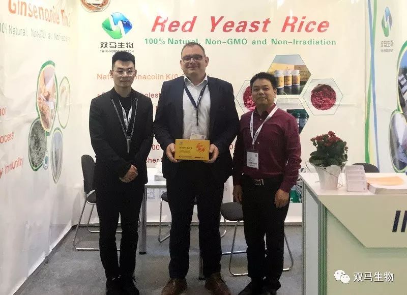 作为国内最早、最专业、生产规格最大的功能性红曲生产企业,值此盛会,公司总经理冯超、国际贸易部总经理徐晓洪携功能红曲、奔马牌红曲胶囊、红曲银杏叶丹参胶囊等产品亮相展会,与国际客户进行了充分的交流并得到了高度认可,并达成多项合作初步意向。